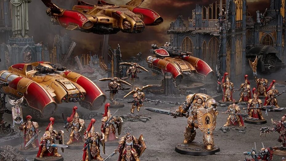 No dejes escapar la oportunidad de hacerte con esta caja llena de miniaturas de infantería, Dreadnoughts decorados al estilo “Custodes” y tanques gravitatorios.