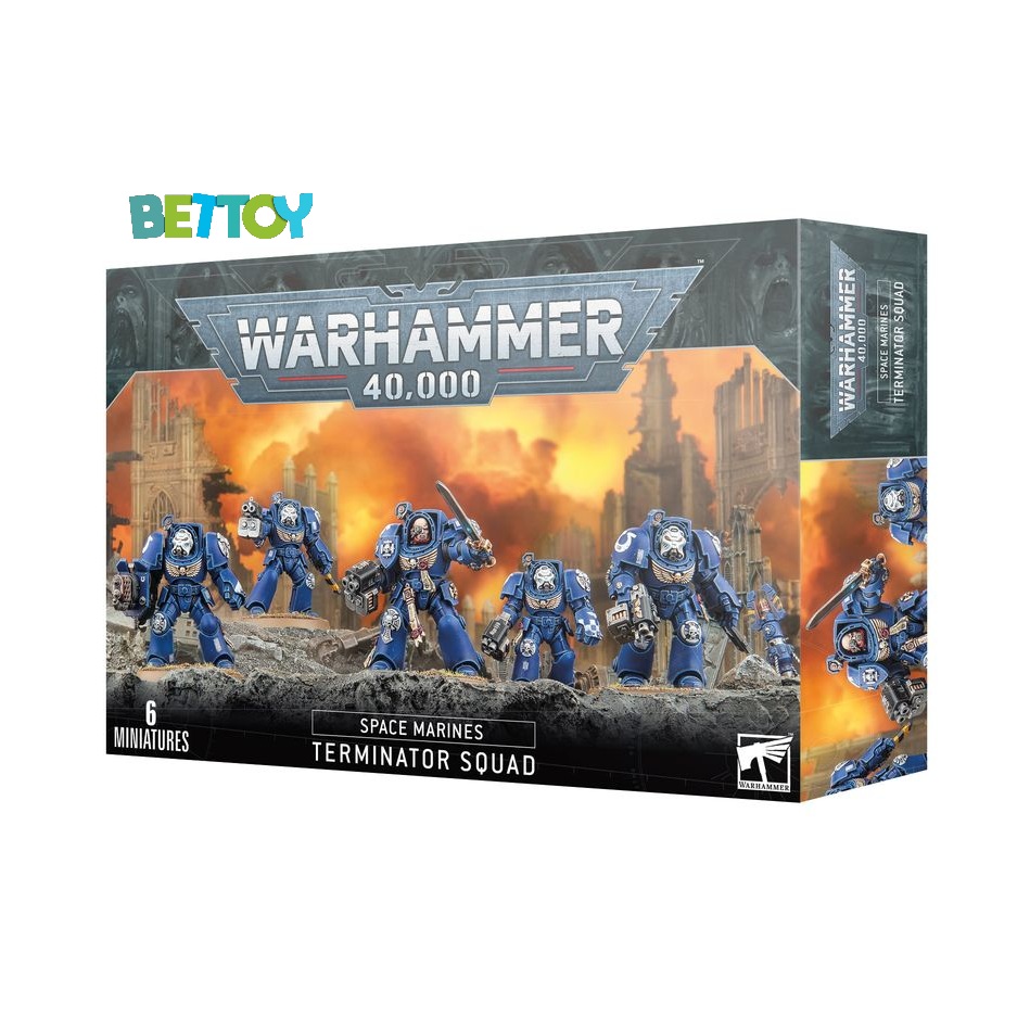 Este kit de plástico de varias piezas permite montar cinco Exterminadores, curtidos Marines Espaciales protegidos por una armadura pesada prácticamente impenetrable. Cada Exterminador va armado con un bólter tormenta de fuego rápido, junto con un puño de energía aplastante o un puño sierra que desgarra armaduras. Uno de ellos puede equiparse en su lugar con un arma especial: un lanzallamas pesado, un cañón de asanto o un lanzamisiles ciclón en la espalda. También puedes montar un Sargento Exterminador engalanado con insignias de honor y reemplazar el puño por un arma de energía opcional.