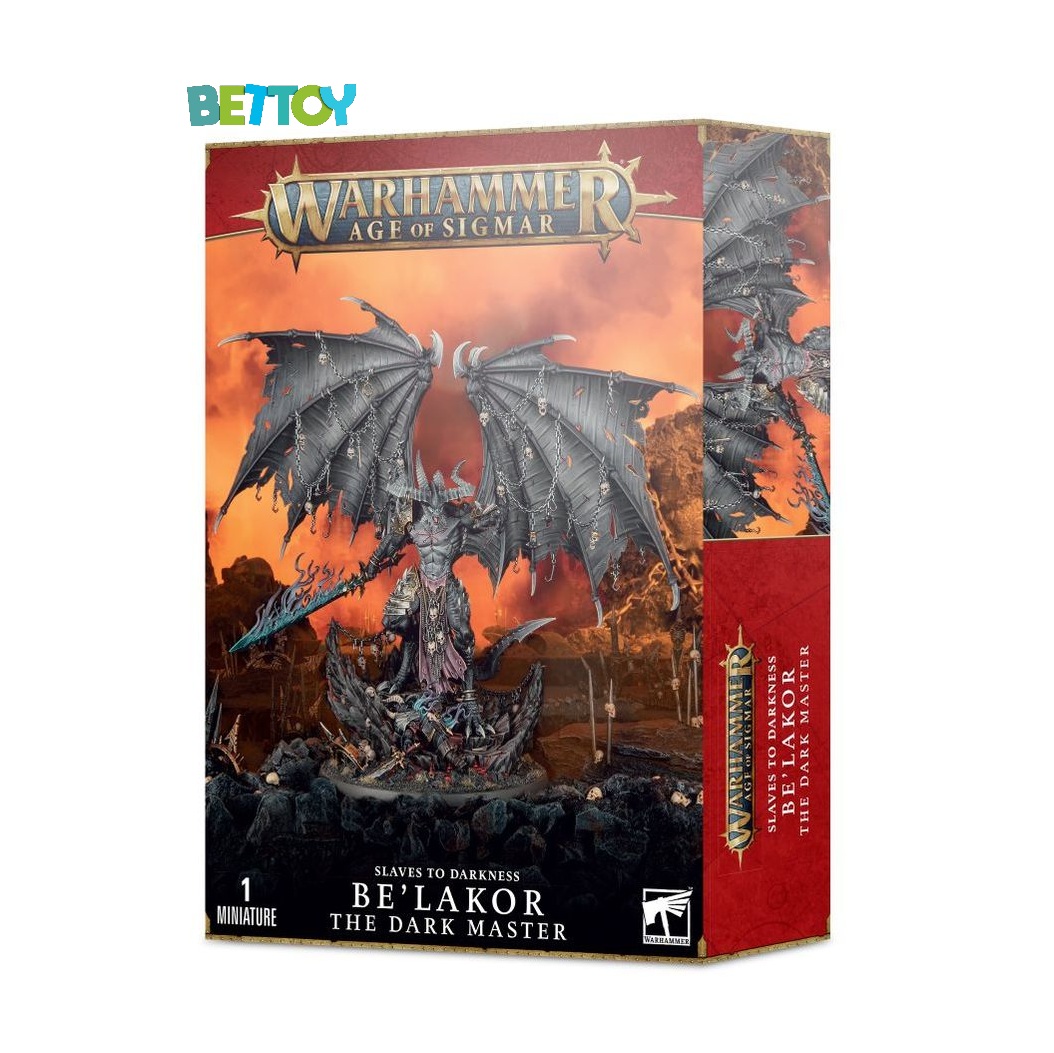 Este kit de plástico multicomponente consta de 85 piezas, con las que puedes montar un Be’lakor, el Señor Oscuro y se suministra con 1 peana Citadel redonda de 100 mm. Este kit contiene múltiples opciones para crear a Be’lakor con la temática de un ejército de Slaves to Darkness de Warhammer Age of Sigmar o de un ejército de Daemons del Caos de Warhammer 40,000, o con una temática neutral que se adapte a ambos juegos.